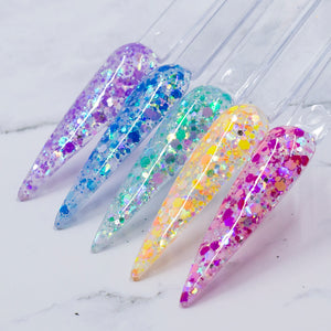 Our new nail dip Azaria is all the tones of those blue waters and set off with the prettiest iridescent sparkles!