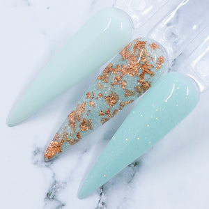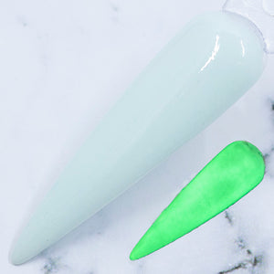 Aurelia – This soft pale mint nail dip powder is as soothing as a mother’s touch, but when the lights go out, it shines with a magical green glow.